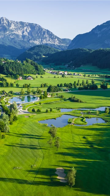 The first 9 holes have a view of the Sengsen Mountains to the north. You will also find spectacular views of the Totes Gebirge Mountains both when teeing off and putting.